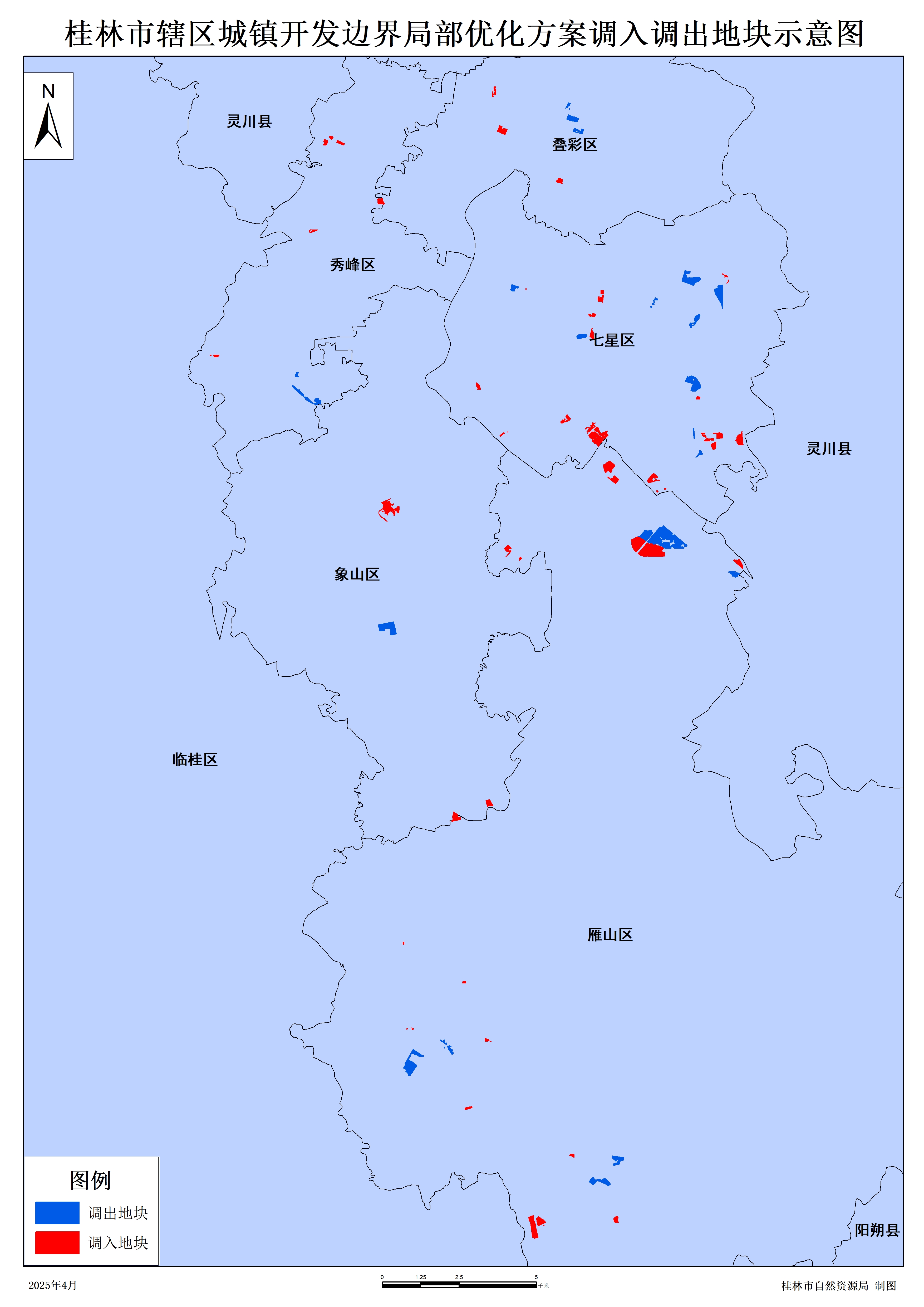 附件:桂林市本级城镇开发边界局部优化调入调出地块分布图。