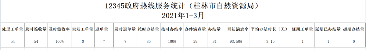 12345政府热线服务统计(桂林市自然资源局)2021年1-3月