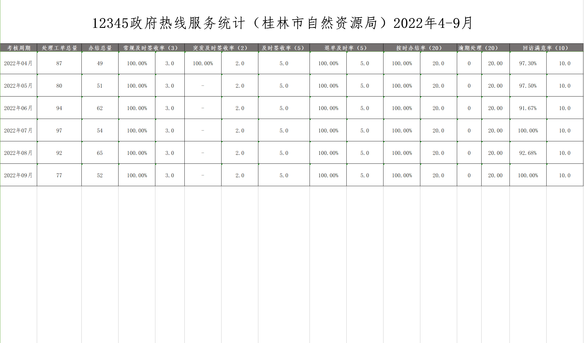 12345政府热线服务统计(桂林市自然资源局)2022年4-9月