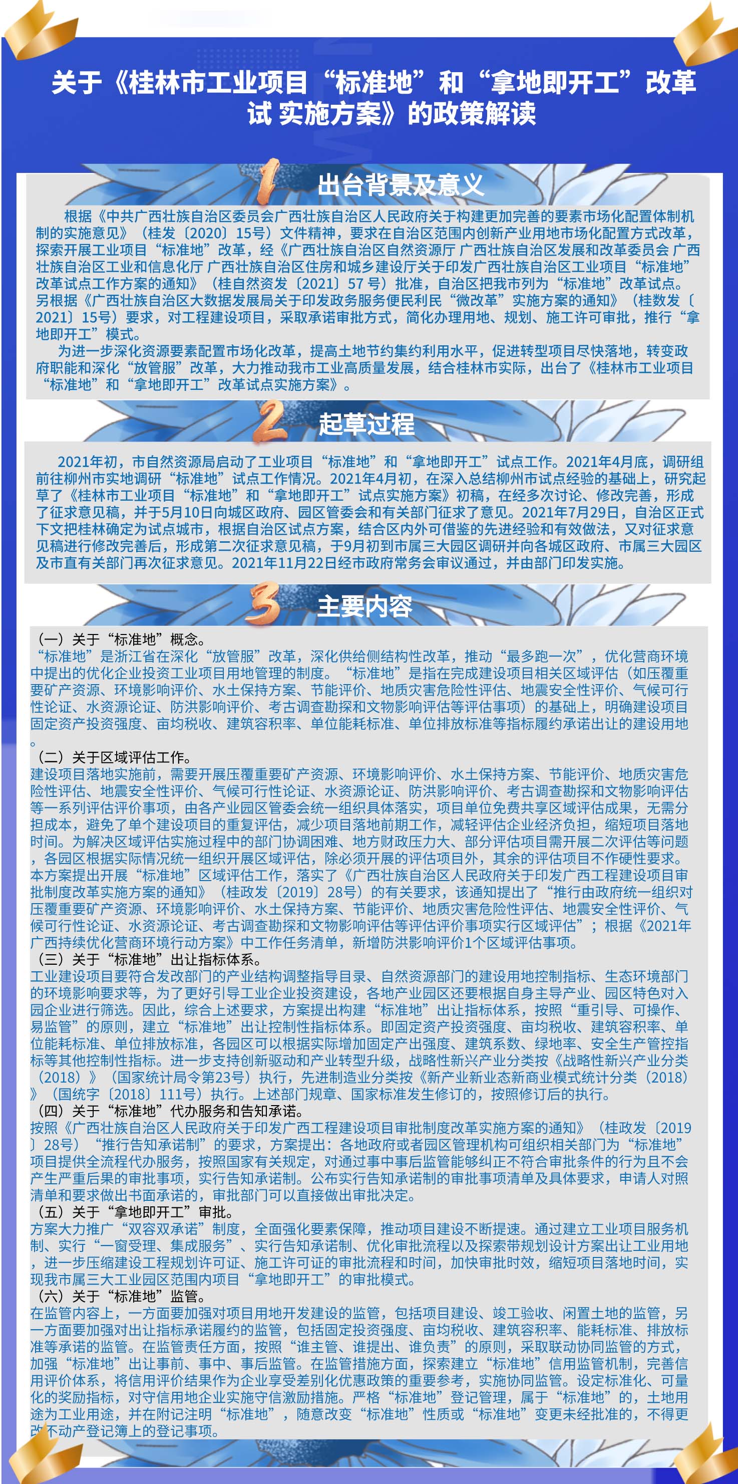 关于《桂林市工业项目“标准地”和“拿地即开工”改革试点实施方案》的政策解读