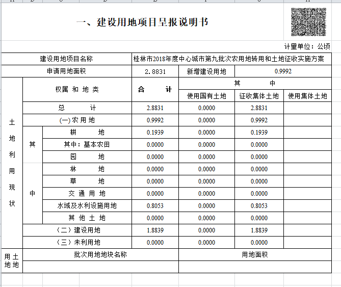 建设用地项目呈报说明书