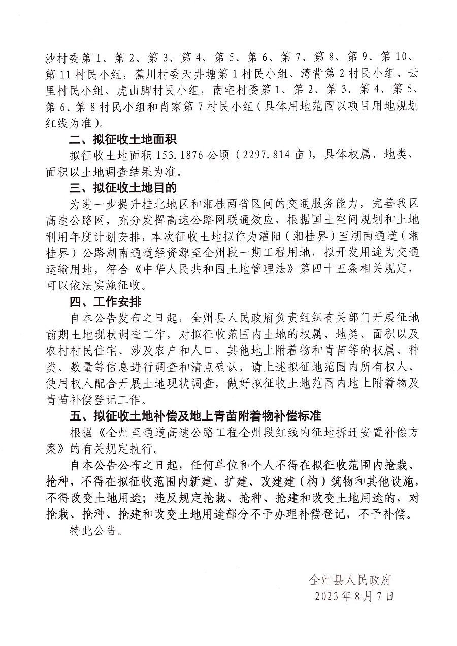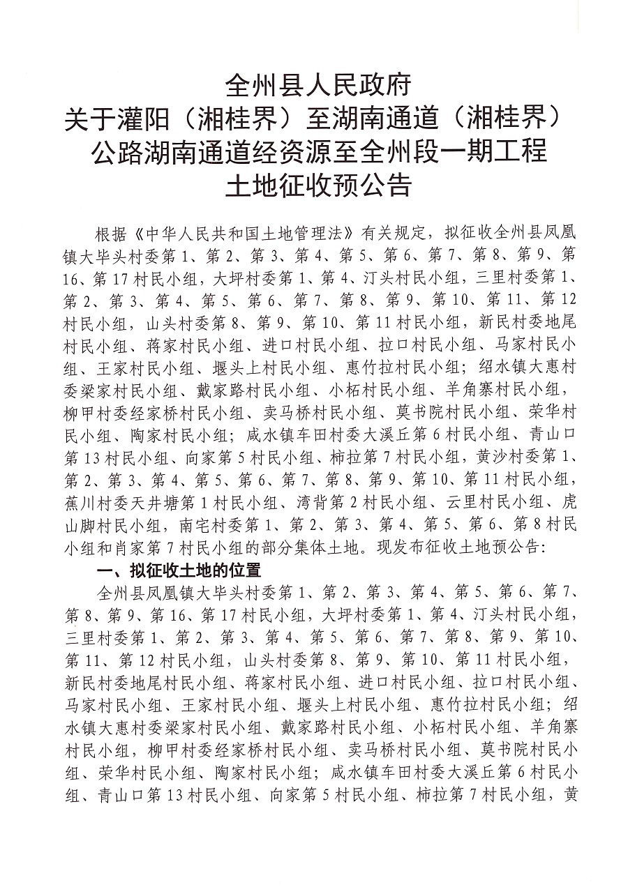 灌阳(湘桂界)至湖南通道(湘桂界)公路湖南通道经资源至全州段一期工程建设用地征地预公告
