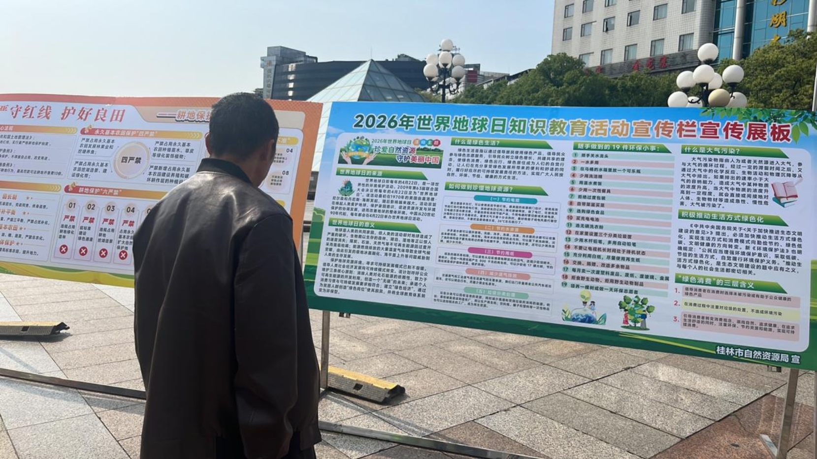 4月22日是第57个世界地球日,今年世界地球日中国活动主题是“珍爱自然资源 守护美丽中国”。23日上午,桂林市自然资源局在市中心广场举行了世界地球日主题宣传活动。