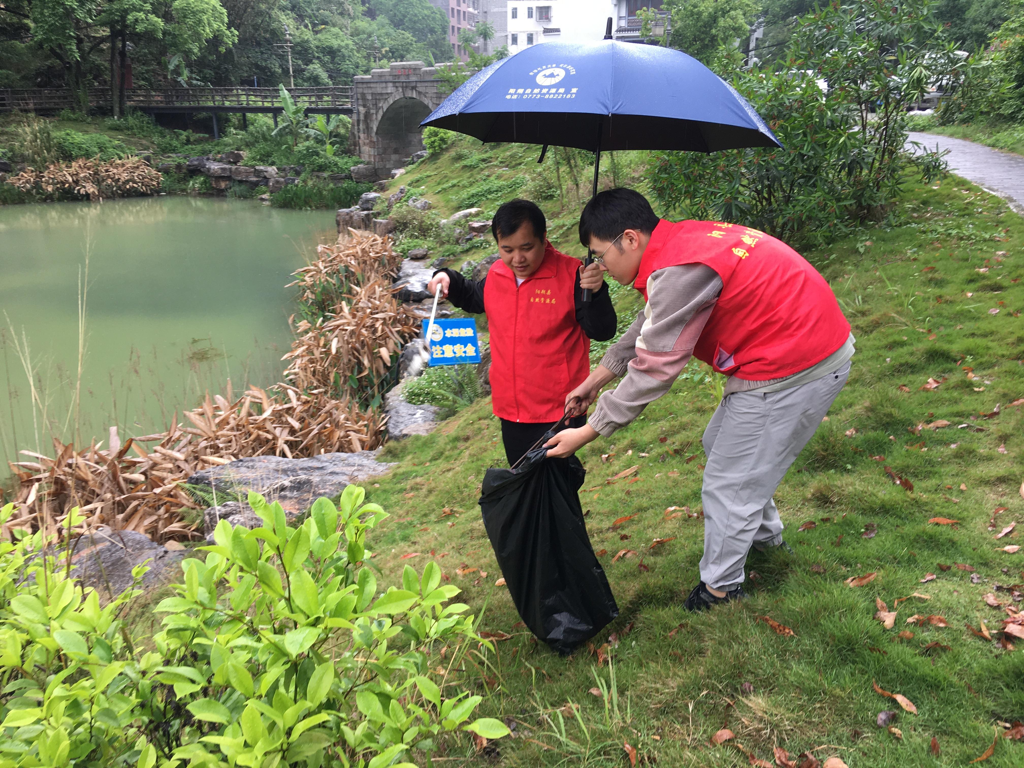 蒙蒙细雨浇不息志愿者们保护环境的热情,大家纷纷撸起袖子,手拿火钳和垃圾袋,围着湖边开展清理整治。活动中,志愿者们不怕脏不怕累,将草丛中、道路边、角落处的纸屑、烟头和杂物全部清理干净。经过共同努力,蓄水湖周围环境卫生面貌焕然一新,提升了居民的人居环境质量。